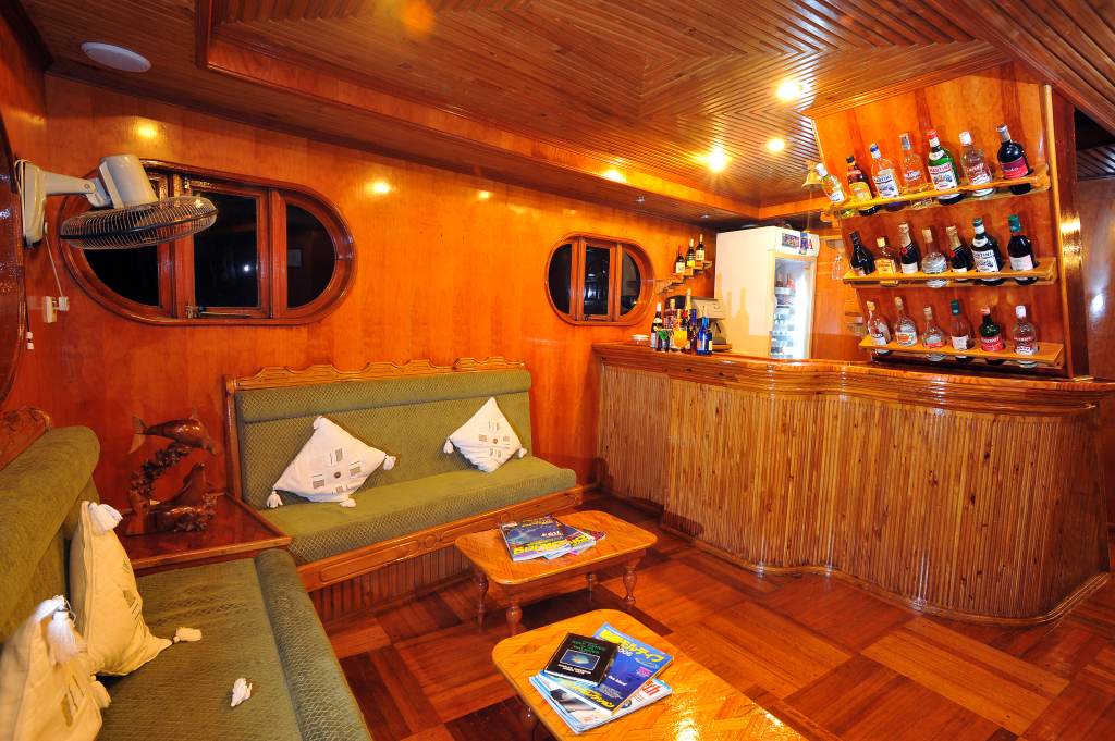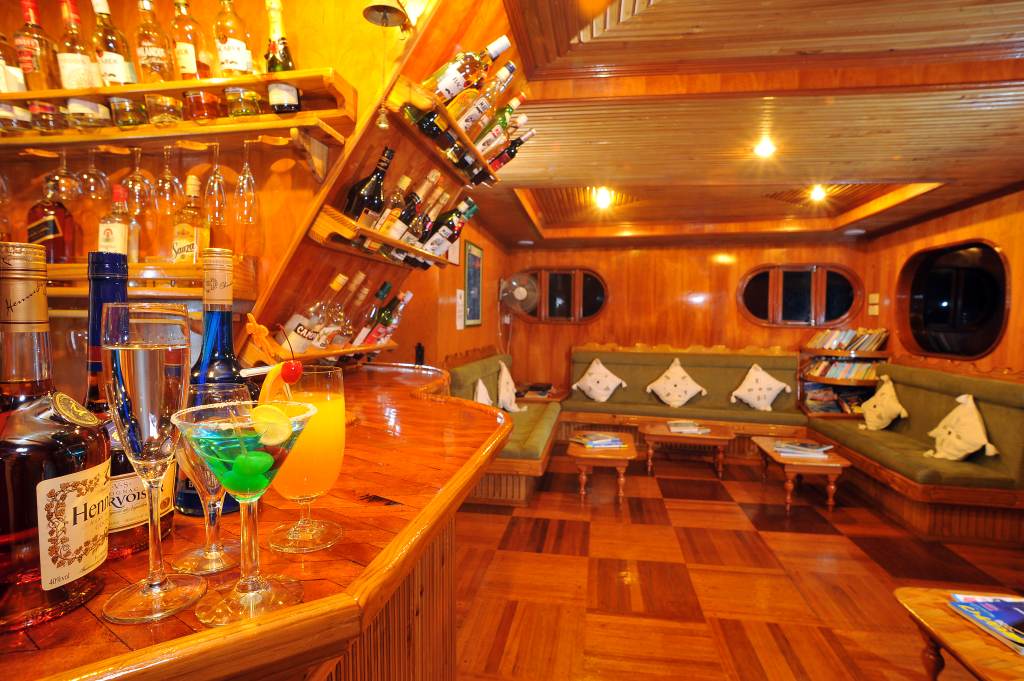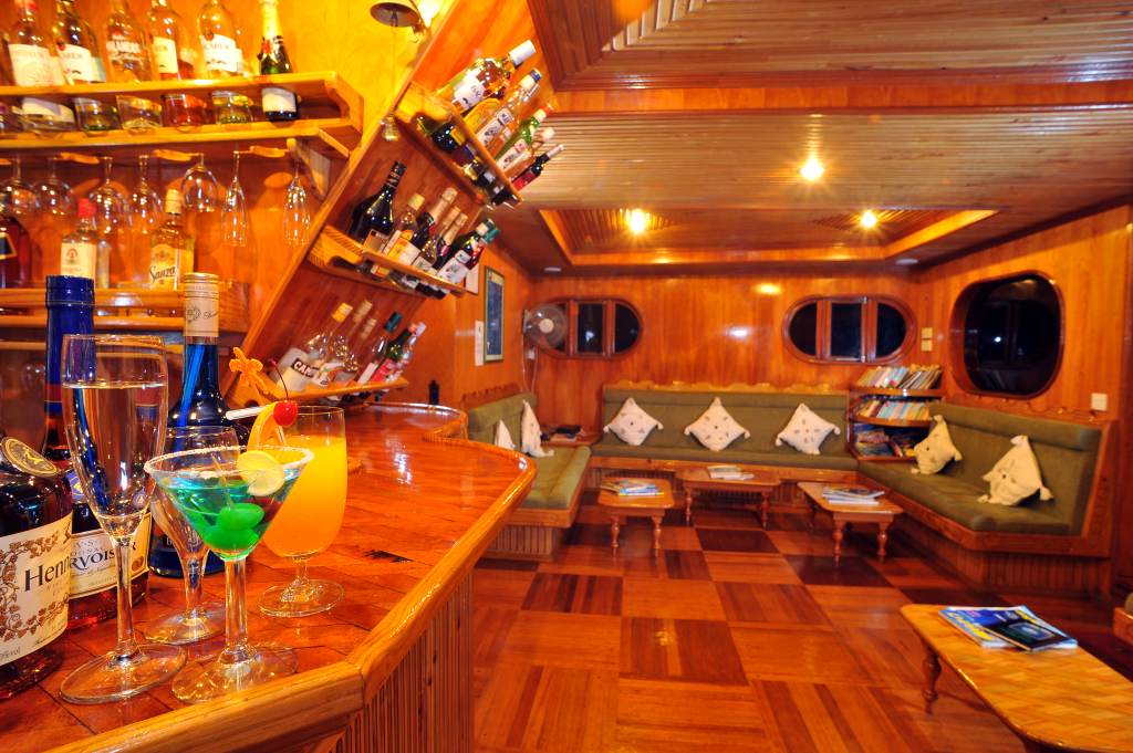 The main deck features a well-stocked bar serving international brands of alcohol, soft drinks, teas, coffees, espressos, cappuccinos and light snacks. The bar has comfortable sofa style indoor seating or if you prefer to enjoy your drink overlooking the ocean, the doors open directly onto an open deck where you can relax of sun loungers.