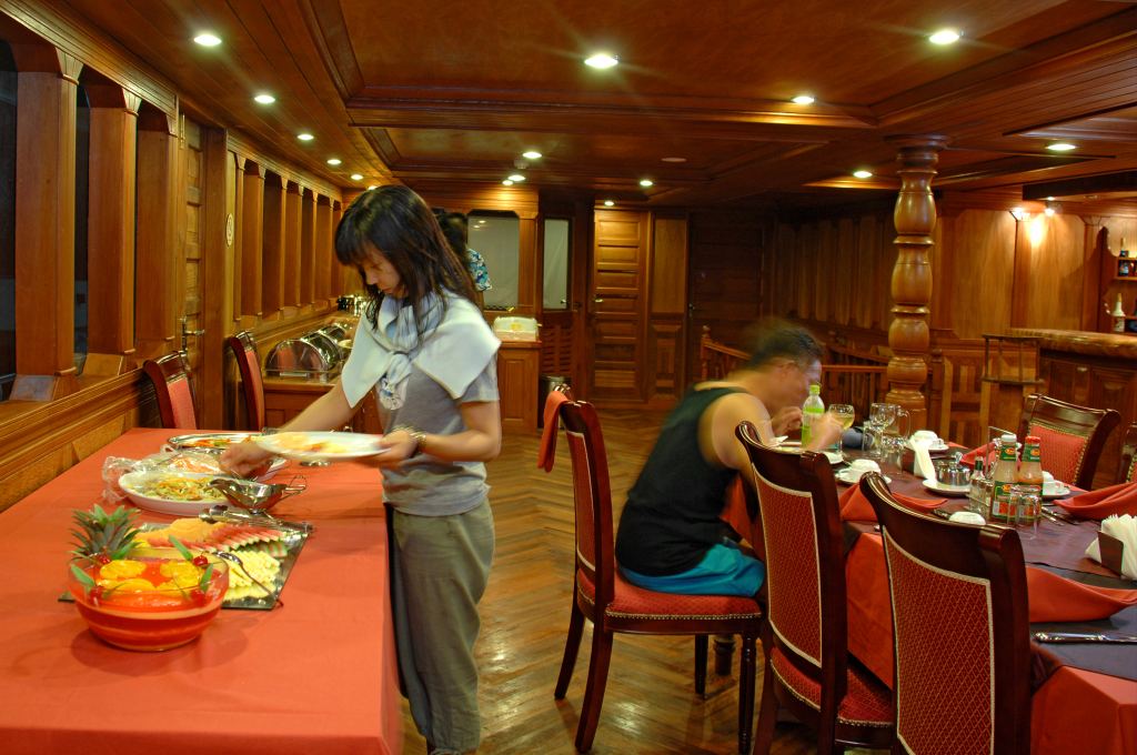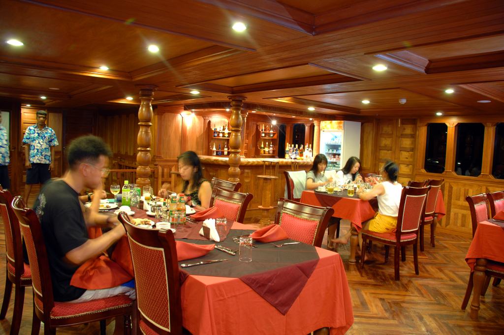 The dining room is spacious and fully air-conditioned. Breakfast lunch and dinner are pleasant social events and with its elegant upholstery and relaxing atmosphere we hope mealtimes become an enjoyable part of your trip.